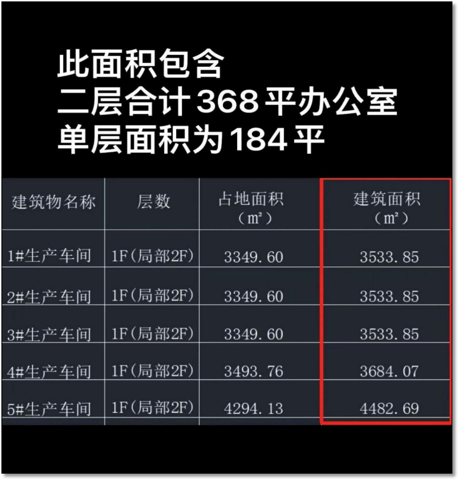 【面积】共5栋厂房